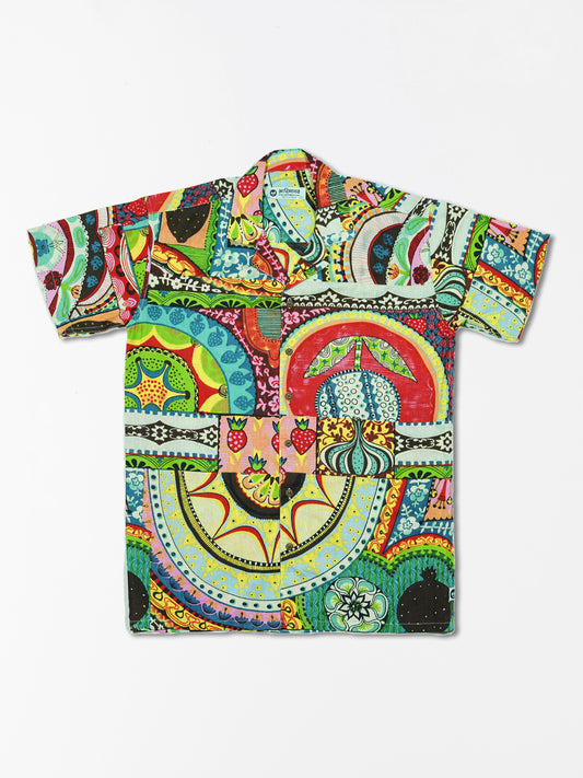 Abstract Green - Sanganeri Print - Unisex Pure Cotton Cuban Collar Shirt