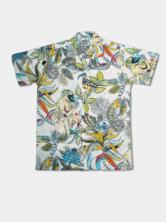 Cool Monkey - Sanganeri Print - Unisex Pure Cotton Cuban Collar Shirt