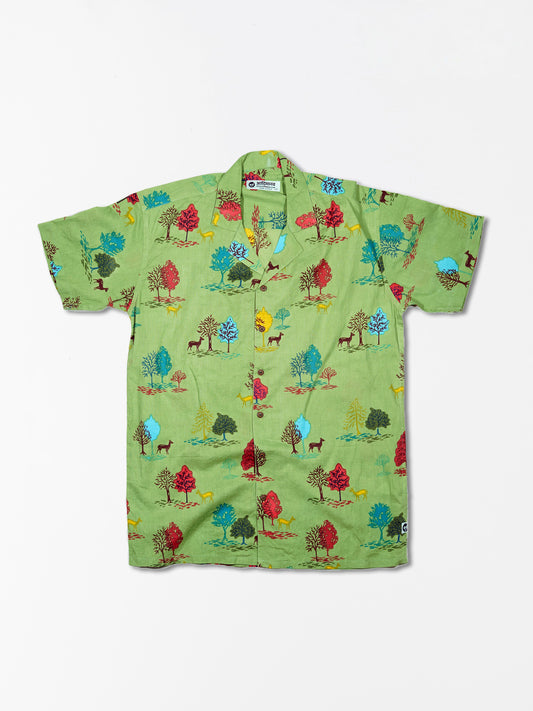 Green Days - Sanganeri Print - Unisex Pure Cotton Cuban Collar Shirt