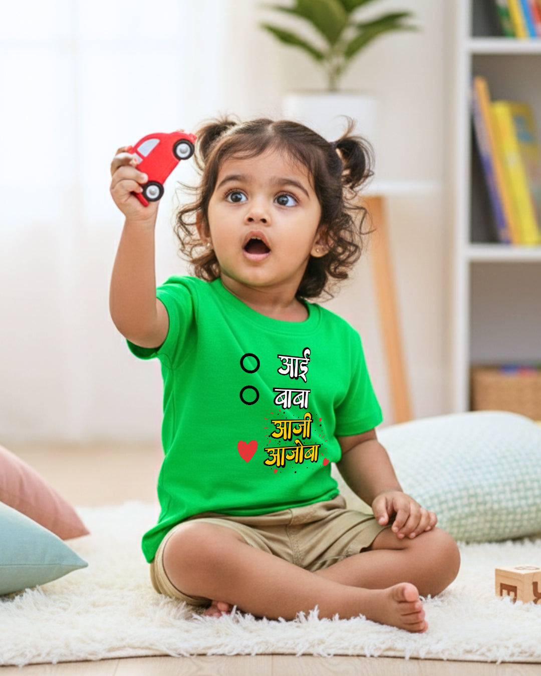 आई बाबा आजी आजोबा – Parrot Green – Kids Half Sleeve मराठी Graphic T-Shirt