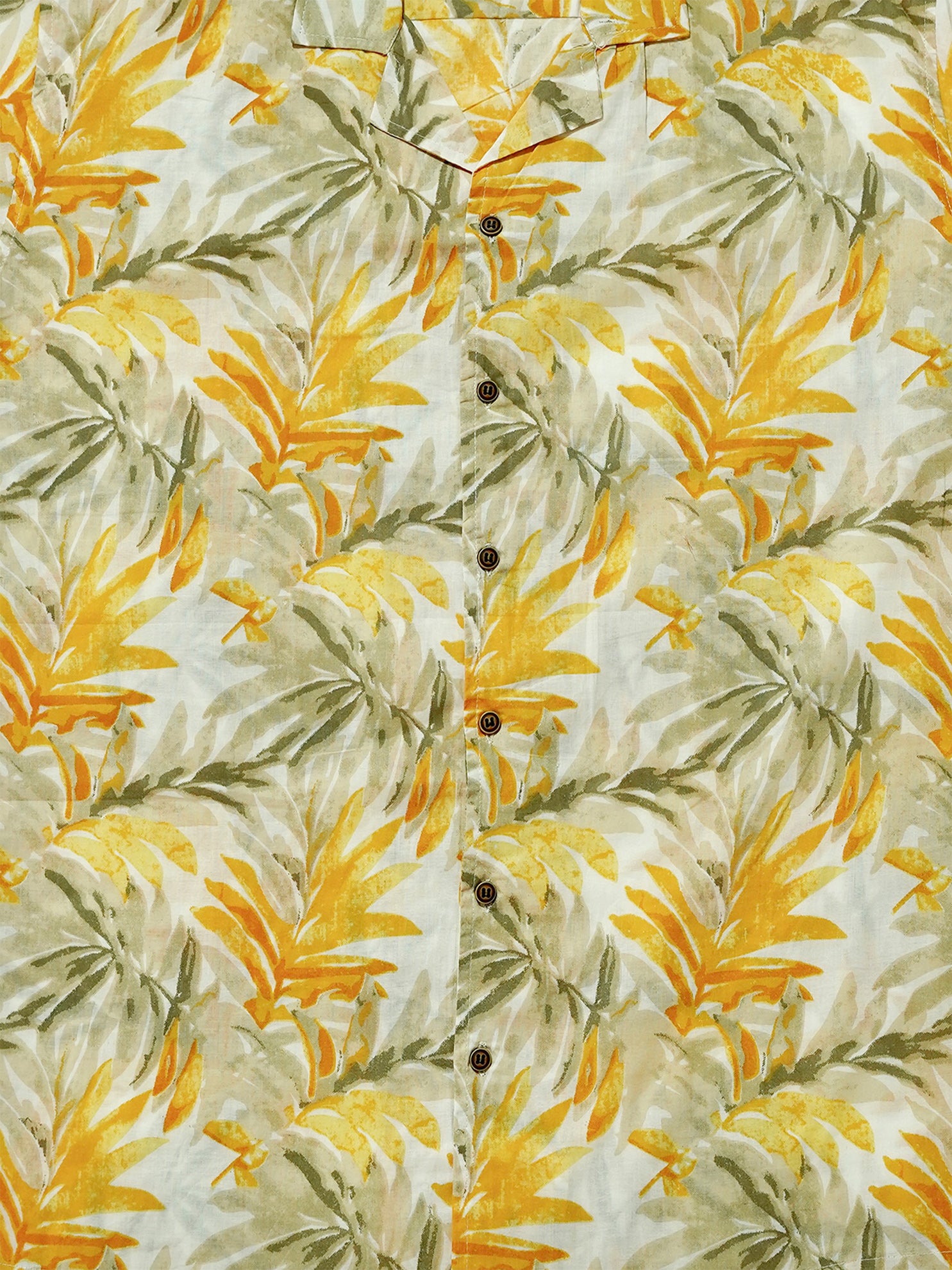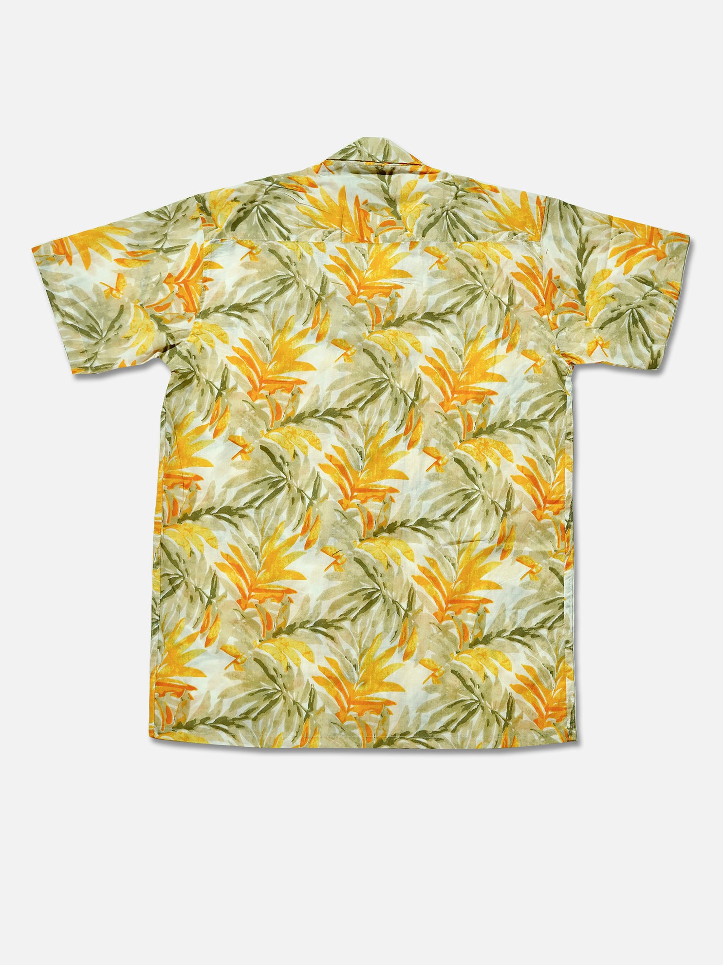 Golden Palms - Sanganeri Print - Unisex Pure Cotton Cuban Collar Shirt