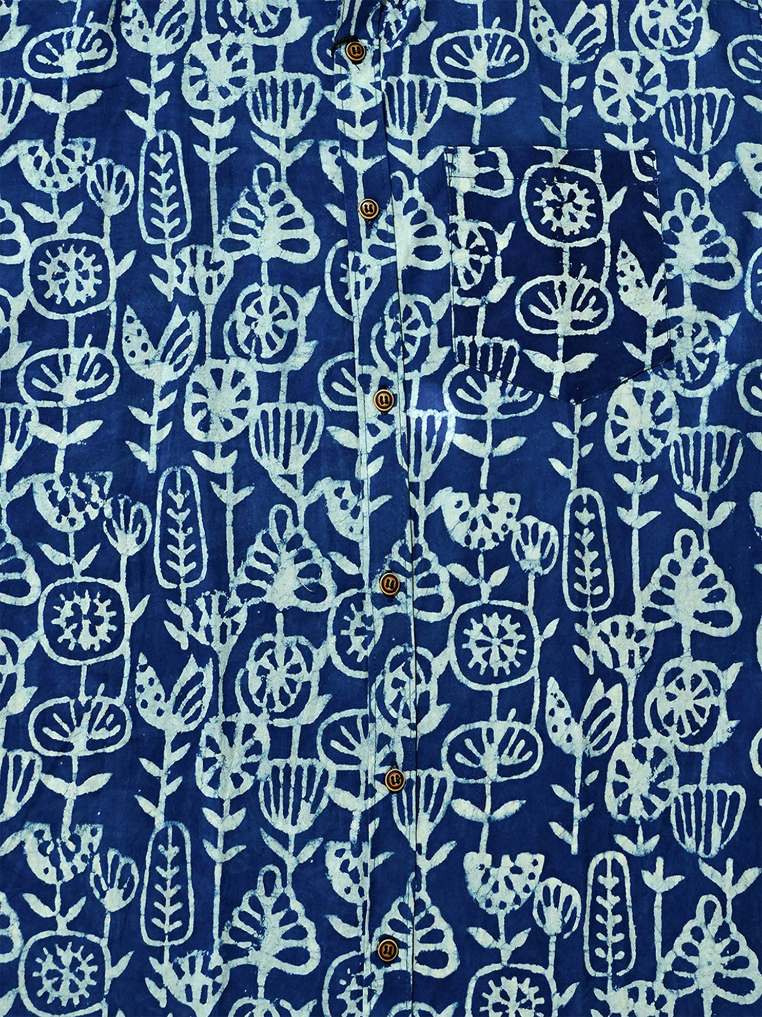Indigo Folk Motifs - Handblock Print - Men’s Pure Cotton Regular Shirt